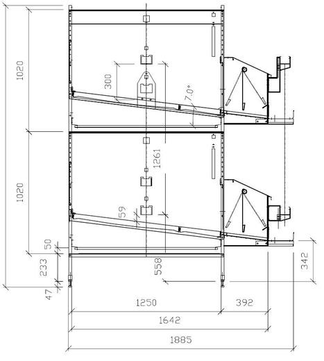 | Plocha klece vč. hnízda 164x480 (cm2) Plocha hnízda na slepici (cm2) Plocha klece na slepici (cm2) Počet slepic v kleci Počet kohoutů v kleci Délka krmné hrany na kus (cm) Délka 1 modulu klece (m) Sklon podlahy Počet napáječek / klec (ks) |